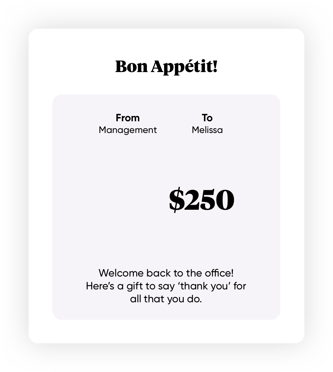Whether you're thanking a client or welcoming employees back into the office, we make it easy to share great food with great people.